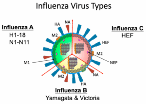 دي اشهر انواع فيروسات الانفلونزا بتتميز بان الفيروس بيكون على سطحه نوعين مين البروتينات وهم : بروتين الهيماجلوتينين Hemaglutinin H و بروتين Neuraminidase N