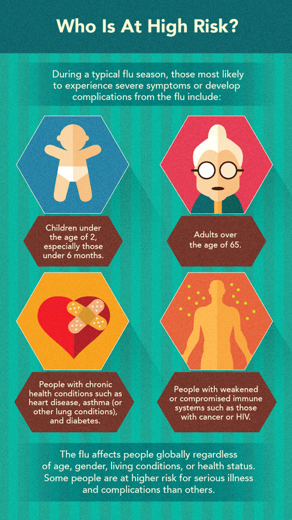وطبعا الاكثر خطورة هم كبار السن و الاشخاص اللي مناعتهم ضعيفة او بيستخدموا ادوية بتأثر على المناعة (زي العلاج الكيماوي) و الأطفال و الحوامل. وعشان دا الفئات دي ضروري تحمي نفسها بالتطعيم السنوي .