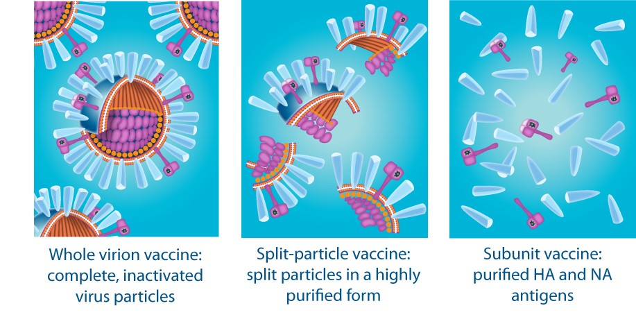 ١-Split vaccine : نموته و نكسره لبروتينات بس زي Vaxigrip/Influsplit من Gsk/ sanofi