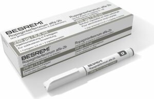4-(Ropegylated): هو شكل آخر من أشكال الأنترفيرون ألفا المعدل. البروتين هنا بيكون mono-pegylated . بمعنى انه بيتم ربط كل مركب بروتين بمركب PEG عشان يكون المنتج النهائي متجانس . الميزة كمان انه بيكون ممتد المفعول أكتر ودا يسمح بإعطائه مرة واحدة كل أسبوعين. بينزل حاليا باسم Besremi