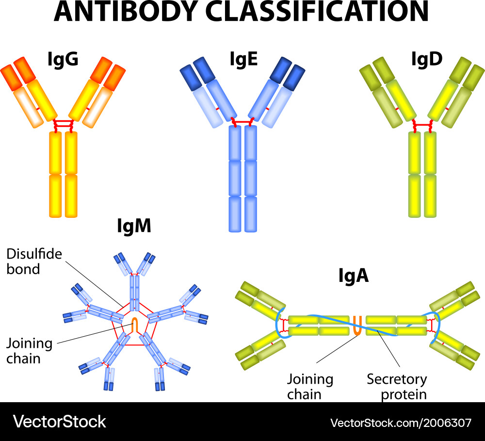 IgM: أول جسم مضاد بيظهر لما يحصل إصابة، بيشتغل بسرعة بس مش بيطول. له دور مهم في الأمراض المناعية