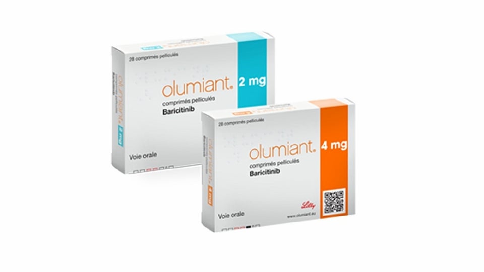 Olumiant من شركة Lilly كان أول مثبط JAK يتم الموافقة عليه لعلاج مرضى الروماتويد المتوسط أو الشديد كخط ثاني للعلاج بعد فشل تجربة علاج واحدة على الأقل باستخدام أدوية DMARD (الأدوية المعدلة لمسار المرض).Baricitinib متوفر في شكل أقراص بجرعات 2 مجم و4 مجم . يمكن أخذه كعلاج منفرد أو مع “ميثوتريكسات” (MTX) بجرعة يومية قصوى 4 مجم، وبيتاخد بدون اعتبار للوجبات.