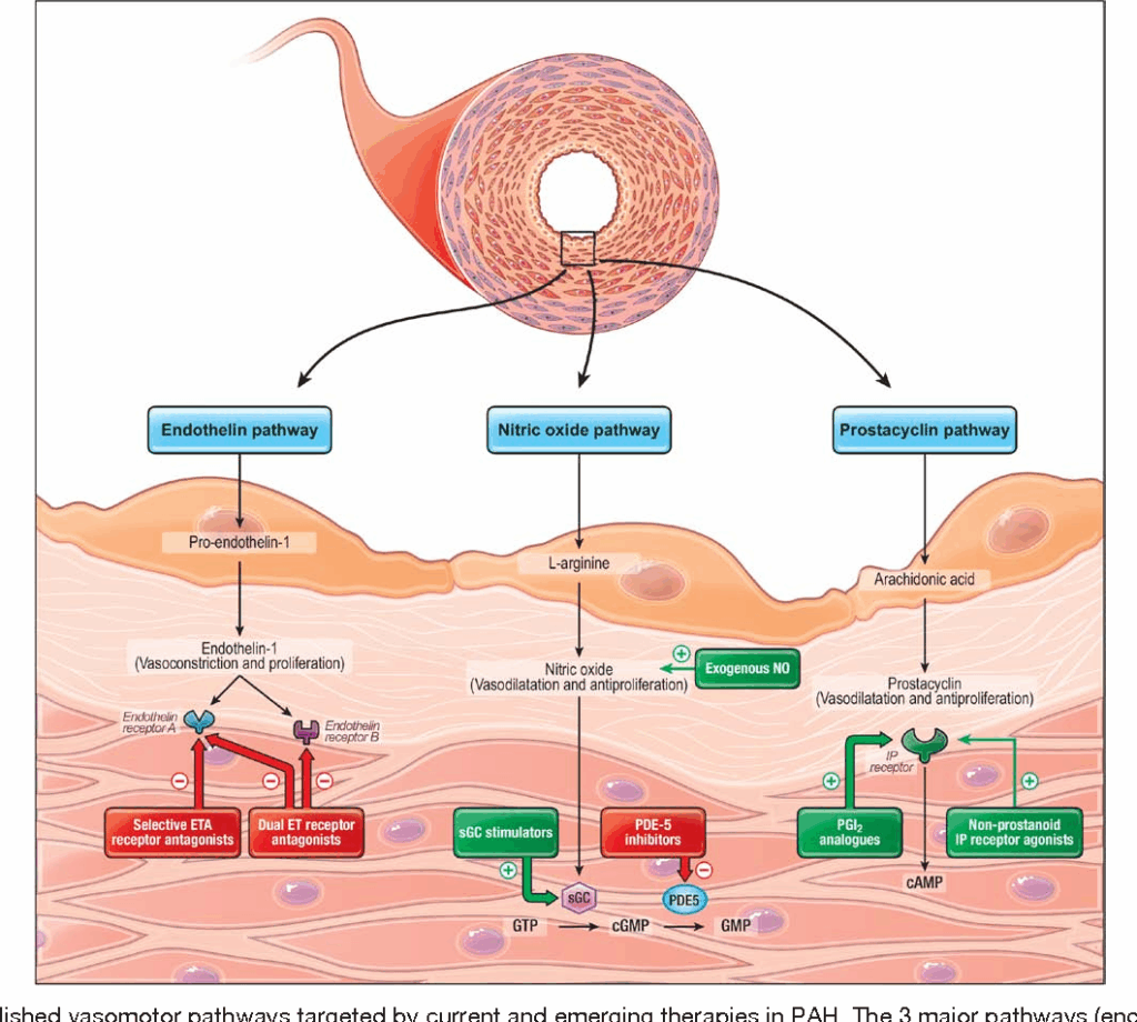 • الإندوثلين يلعب دورًا رئيسيًا في تضيق الأوعية الدموية، والادوية المضادة له تلعب دور مهم في ال PAH.