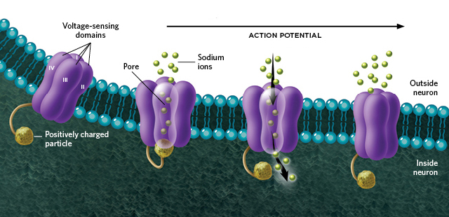 قنوات الصوديوم هي بروتينات موجودة في الغشاء الخارجي للخلايا العصبية . البروتينات دي مسؤولة عن نقل النبضات العصبية من الاطراف و الأعضاء الحيوية للمخ  . القنوات دي بتكون مصممة بحيث لما الخلية العصبية تتعرض لمثير  Stimulus  تقوم تفتح جيب في جدار الخلية. الجيوب دي بتعدي ايونات  الصوديوم . وبما ان ايونات الصوديوم ليها شحنة كهربائية فدا بيعمل نبضه كهربائية بتنقل الاشارة العصبية من خلية للتانية لحد ماتوصل لهدفها .  قنوات الصوديوم بتلعب دور مهم و حيوي في الاحساس  بالألم . لكنها كمان ليها ادوار تانية كتير في تنظيم ضربات القلب   و الخلل فيها ممكن يسبب امراض زي الصرع.